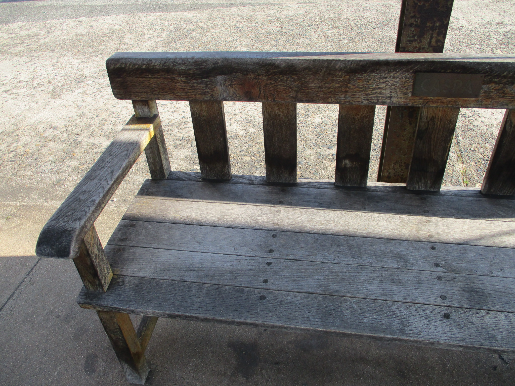 「葛城」停留所。ベンチに旧キャスパのプレートが張ってある。